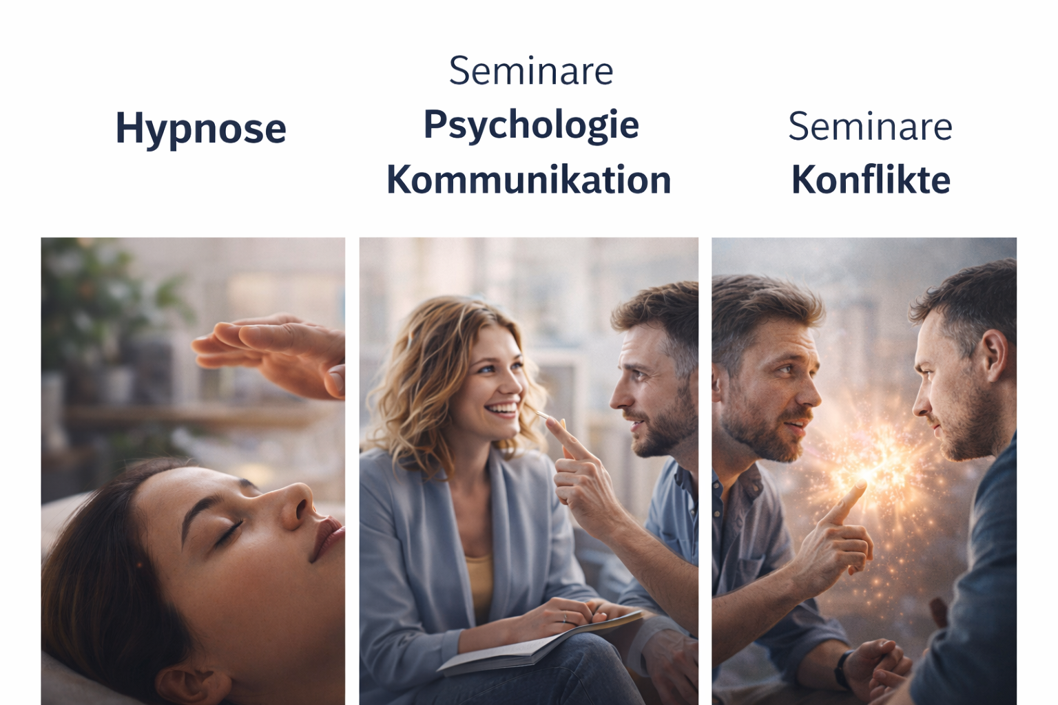 Manche Herausforderungen lassen sich nicht allein durch Nachdenken lösen. Sie brauchen einen Raum, in dem man tiefer schaut. Genau diesen Raum biete ich an – in Einzelsitzungen mit Hypnose ebenso wie in Gruppenseminaren zu Psychologie, Kommunikation und Konfliktmanagement.