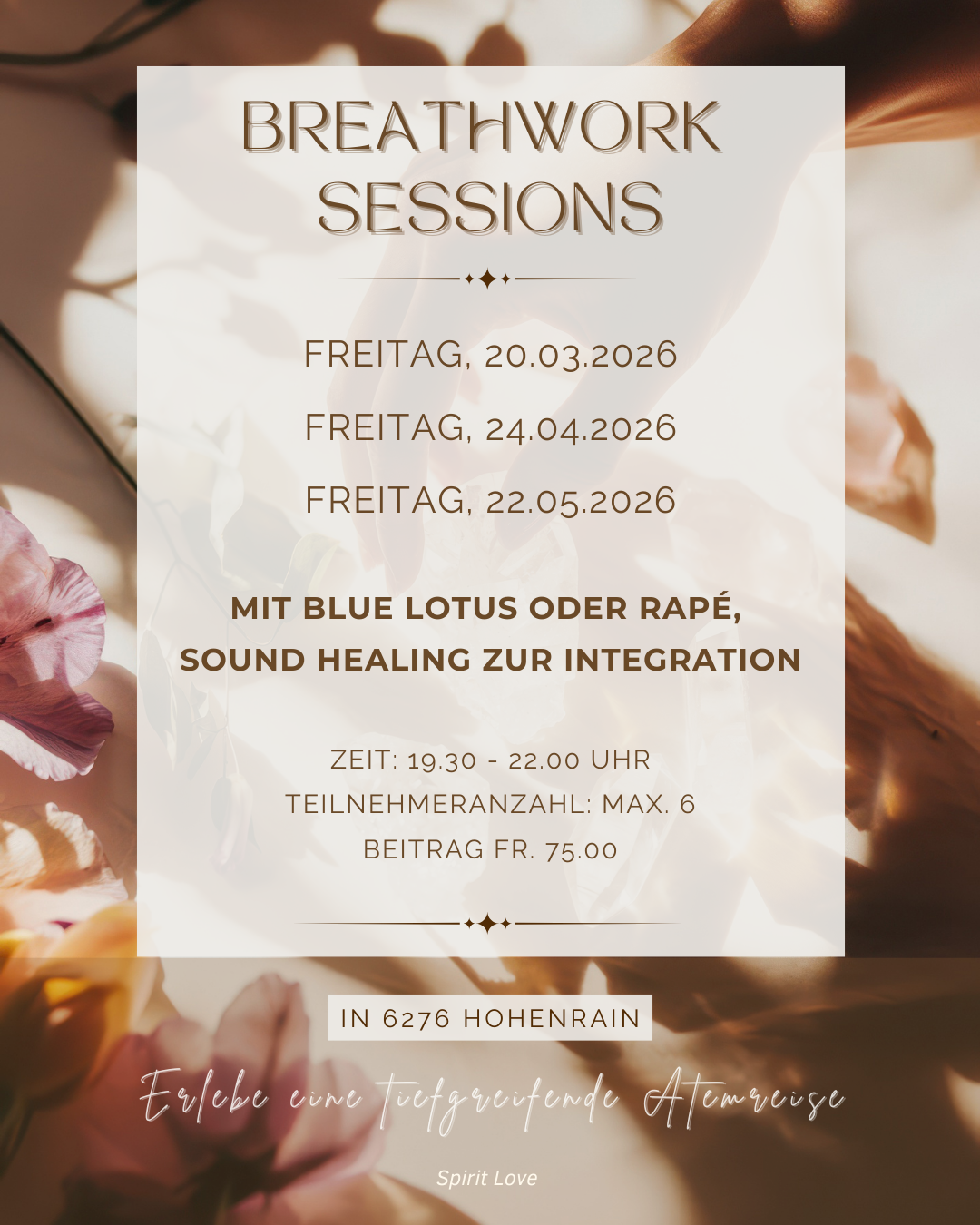 Unsere Atmung ist der Schlüssel und in Kombination mit gezielt eingesetzten Frequenzen entsteht eine noch tiefere Erfahrung der Heilung und Transformation.